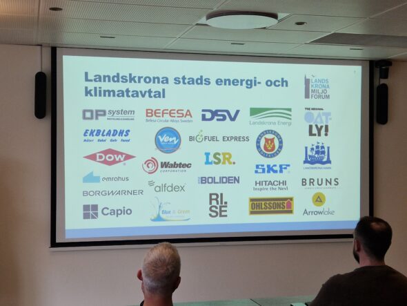 Annie och Evelina från Landskrona Stad delade ut diplom till företag som anslutit sig till Landskrona stads energi- och klimatavtal. De två senaste företagen att skriva under var Arrow Lake samt BRUNS Products. Diplom delades också ut till Emrahus Projektutveckling samt Hitachi Energy, som skrivit under avtalet tidigare.