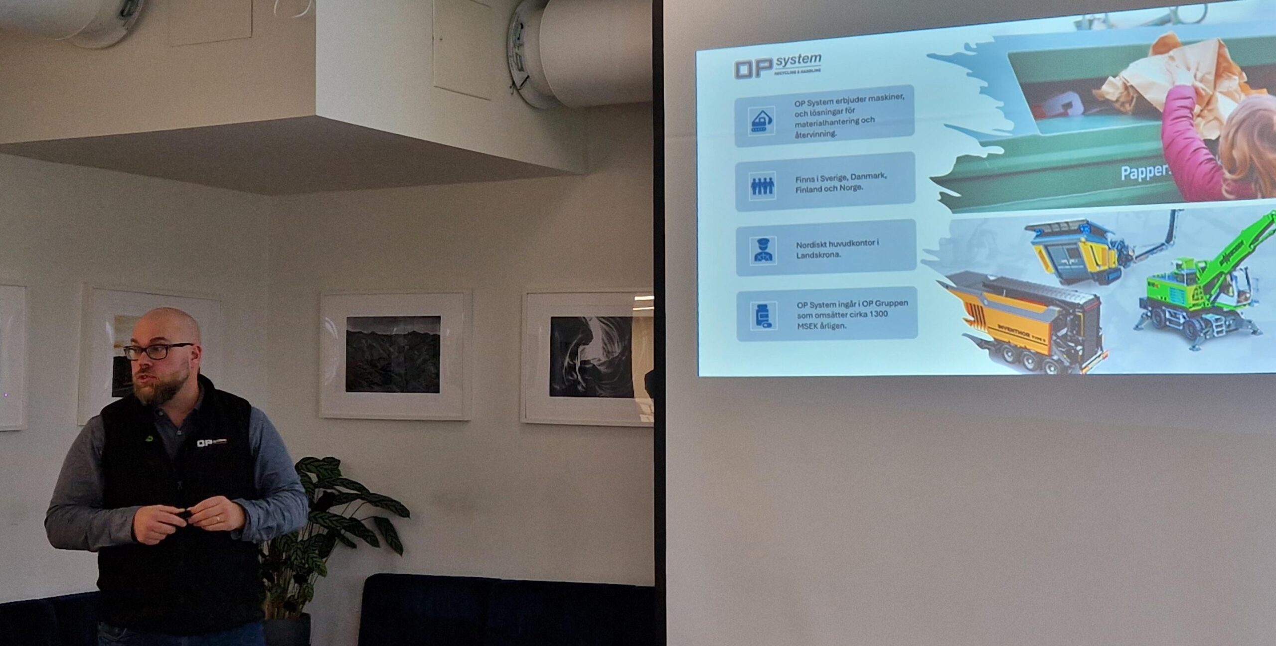 Inspiratör och chef för 2030-sekretariatet Mattias Goldmann inledde med att prata om vikten av omställning inom transportsektorn, lägesbeskrivning och goda exempel från andra delar av Sverige, med fokus på vad företag kan göra på egen hand eller i samarbete med andra.