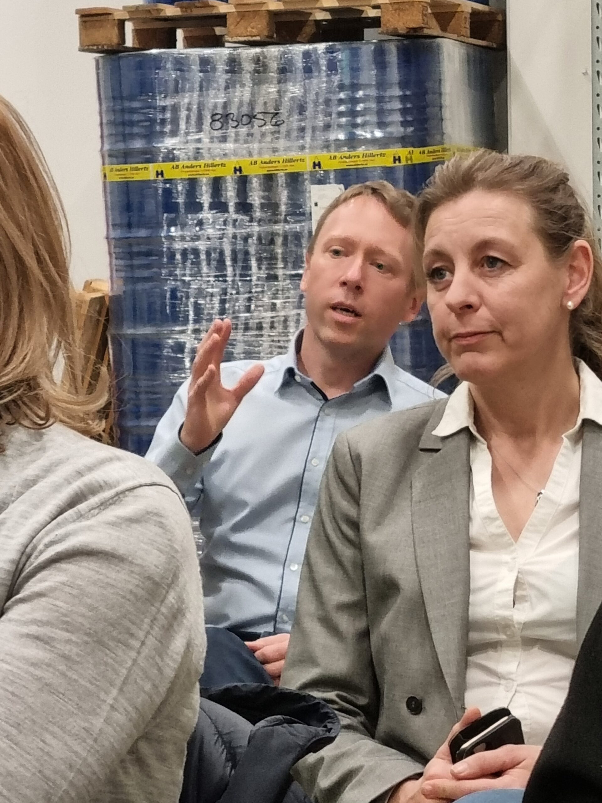 Cecilia Evaldsson och David Löwenstein hälsade medlemmarna välkomna till Blue & Green och presenterade företaget och deras Miljö-/klimat-/hållbarhetsarbete.