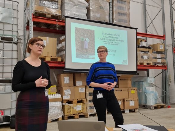 Tillsammans utforskade sedan deltagarna Hållbar utveckling – inte bara miljö- och klimatinsatser i workshopen ”Så stärker social hållbarhet och samhällsansvar affären” lett av Anna Landeborg och Maria Collings från The Tardigrades.