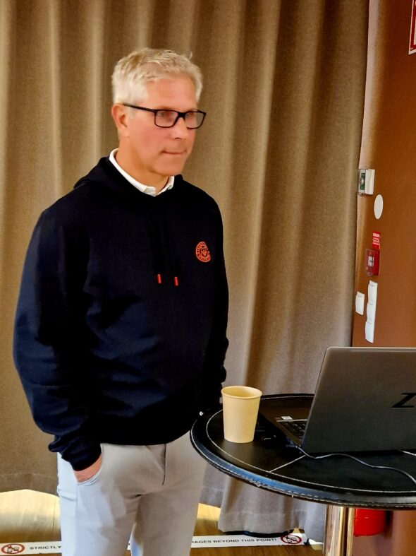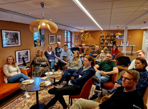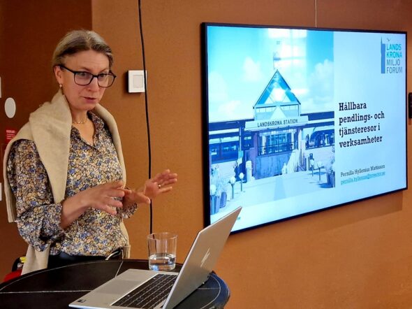 Under besöket presenterade bland annat Patrik Brorsson Landskrona GKs hållbarhetsarbete och medlemmarna diskuterade Hållbara pendlings- och tjänsteresor i verksamheter – Vilka vinster ger det? tillsammans med Pernilla Hyllenius Mattisson från Trivector Traffic.